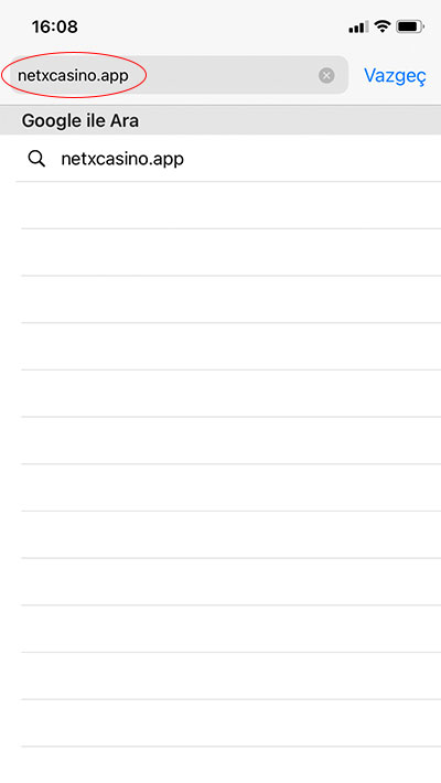 iPhone cihazınızdan Safari, Android'den ise Chrome Uygulamasını Açın ve "netxcasino.app" adresine gidin.